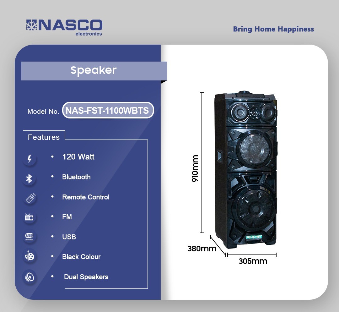 Experience immersive audio with the Nasco 110Watt Bluetooth Sound Tower.